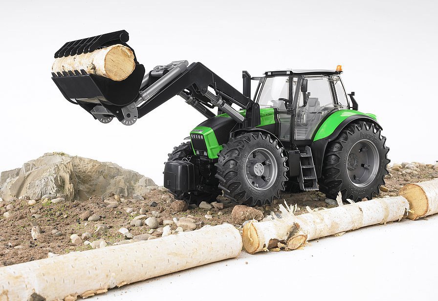 Realistyczny model Agrotrona X720. Drzwi kabiny otwierają się, ciągnik posiada zdejmowany ładowacz czołowy, oś terenową i zaczep holowniczy. Dzięki systemowi sterowania z kierownicą wysuwaną przez dach kabiny, ciągnik jest łatwy w obsłudze.