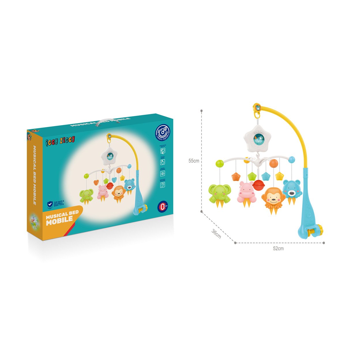 Karuzela Iggy Ziggy to jasny i ekscytujący dodatek do pokoju dziecięcego. Karuzela jest mechaniczna i wyposażona w miękkie zabawki, które obracają się w rytm przyjemnej muzyki, uspokajając i bawiąc dziecko. Łatwo mocuje się ją do łóżeczka, zapewniając komfort i bezpieczeństwo podczas snu. Karuzela wspomaga rozwój sensoryczny i motoryczny dziecka, a także pomaga stworzyć spokojną atmosferę do snu.