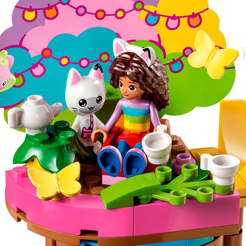 Zestaw otwiera świat zabawy i radości dla fanów serialu „Domek dla lalek Gabby”. Dzieci przenoszą się do cudownego miejsca z domkiem na drzewie, gdzie Gabby, Pandy i Wróżka Kitty urządzają sobie herbatkę. Zestaw zawiera zjeżdżalnię, huśtawkę i karuzelę, zapewniając niekończącą się zabawę. Jasne instrukcje i aplikacja Lego Builder sprawiają, że montaż jest prosty i ekscytujący. Duży klocek dla początkujących pozwala dzieciom od razu rozpocząć budowanie, dzięki czemu zabawa staje się jeszcze bardziej ekscytująca.