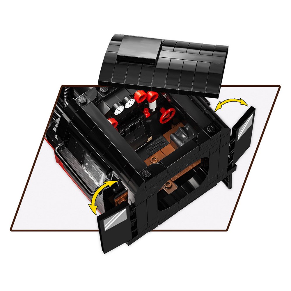 Model klocków niemieckiej lokomotywy od COBI. Projekt wiernie odwzorowuje bryłę, proporcje i detale legendarnego parowozu. Specjalny zestaw 2 w 1 zawiera dwa różne zestawy dodatkowych klocków, pozwalając zbudować model niemieckiej lokomotywy DR BR 52 z niemieckimi oznaczeniami z czasów II wojny światowej lub lokomotywy z polskimi oznaczeniami z czasów Polskich Kolei Państwowych (PRL).