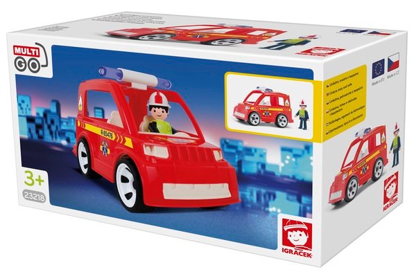 Samochód ze strażakiem Efko MultiGO 23218 to zestaw zawierający: wóz strażacki, strażaka Igracka oraz różne akcesoria w zestawie. Możliwość zamontowania uniwersalnej przyczepy MultiGO: zamontuj 1 z 5 nadwozi i wymyśl nową zabawę. Wspiera rozwój motoryki, wyobraźni i zdolności twórczych. Efko to znana na całym świecie czeska firma produkująca oryginalne i wysokiej jakości zabawki dla dzieci. Asortyment tego producenta jest bardzo szeroki: obejmuje on samochody ciężarowe z unikalnym systemem wymiennych nadwozi MultiGO, kreatywne modele ROTO oraz serię figurek i akcesoriów do zabawy w różne zawody IGRACEK.