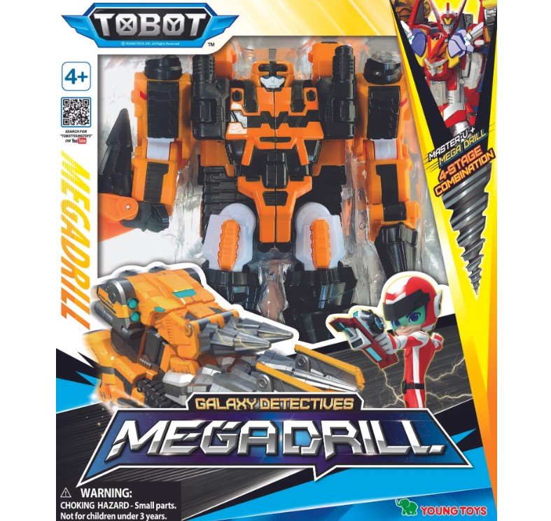 Zabawka Transformer Tobot Detektywi Galaktyki Mega Wiertło 301104. Fani Tobotów docenią zabawkę Transformer. Ten robot z łatwością przemienia się w prawdziwego crossovera, a proces transformacji nie jest skomplikowany, więc każdy chłopiec poradzi sobie z zamianą robota w samochód i z powrotem. Koła samochodu obracają się, a sama zabawka ma dogodny rozmiar, który pozwala dziecku wygodnie trzymać ją w dłoni lub toczyć po podłodze. Interakcja z tym transformatorem rozwija pamięć, uczy logicznego myślenia, ćwiczy motorykę dłoni oraz rozwija wyobraźnię i fantazję. Toboty, start!