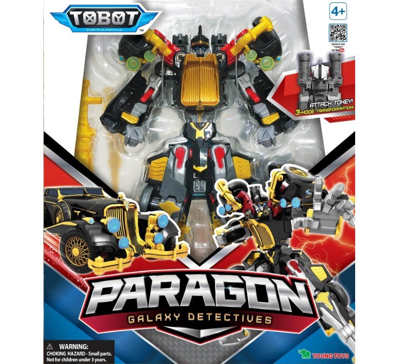 Zabawka Transformer Tobot Detektywi Galaktyki S2 Paragon 301112. Transformer Tobot GD S2 z serialu animowanego Tobot zapadł w pamięć dzieciom ze względu na śmiałe usposobienie i łagodny charakter. Zabawka wiernie odtwarza bohatera, dzięki czemu pomoże wiernym fanom odgrywać ekscytujące przygody nie tylko w postaci robota, ale także jako szybki samochód z wytłoczonymi kołami. Transformer z łatwością zamienia się w realistyczny samochód. Tobot ma ruchome kończyny i może przybierać różne pozy. Ponadto transformacja w samochód i z powrotem w tobota rozwija małą motorykę, myślenie przestrzenne i logiczne.
